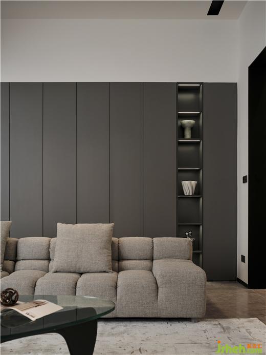 再現(xiàn)線條意趣,以隱藏式手法重新演繹極簡(jiǎn)格調(diào),開合之間,串聯(lián)了儲(chǔ)物功能與審美情趣,鹽城私宅裝修設(shè)計(jì)拓展了實(shí)用空間的靈活性、美學(xué)性、聯(lián)動(dòng)性,毗鄰柔和布藝構(gòu)成了“前景為動(dòng),后景為止”的空間序列。