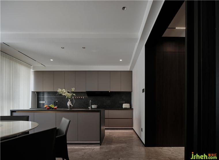 鹽城私宅裝修設(shè)計(jì)選用穩(wěn)重色調(diào)的島臺(tái)作軟隔斷,放任橫向線條的動(dòng)勢(shì)漸次勾勒出空間層次,善用無(wú)主燈設(shè)計(jì)擴(kuò)展縱向尺度的疏朗氣質(zhì),引入自由體感。凹凸結(jié)構(gòu)與色調(diào)變化同步,衡量周圍環(huán)境的特征,讓人將時(shí)光傾注于熱愛(ài)的美食。