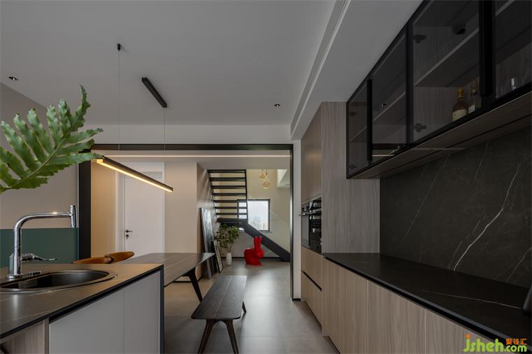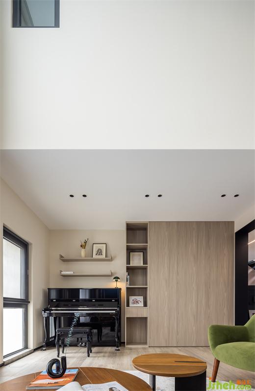 一面挑空賦予熱帶葉片肆意生長的尺度,構(gòu)筑出夢中意境,令人自由呼吸、暢意遐想。一面回歸日常,迎接音樂的飛揚(yáng)意象,復(fù)式裝修設(shè)計以實景轉(zhuǎn)述“看不見、摸不著”卻總吸引人的空間頻率。