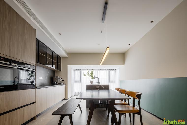 依架構(gòu)特征與采光程度,在實用性的基礎(chǔ)之上容納自然氣息,擴(kuò)展生活的想象力、靈活度、自洽感。運用大面積木質(zhì)與高雅大理石確立場域型格,用跳色元素展露生機(jī)與趣味。