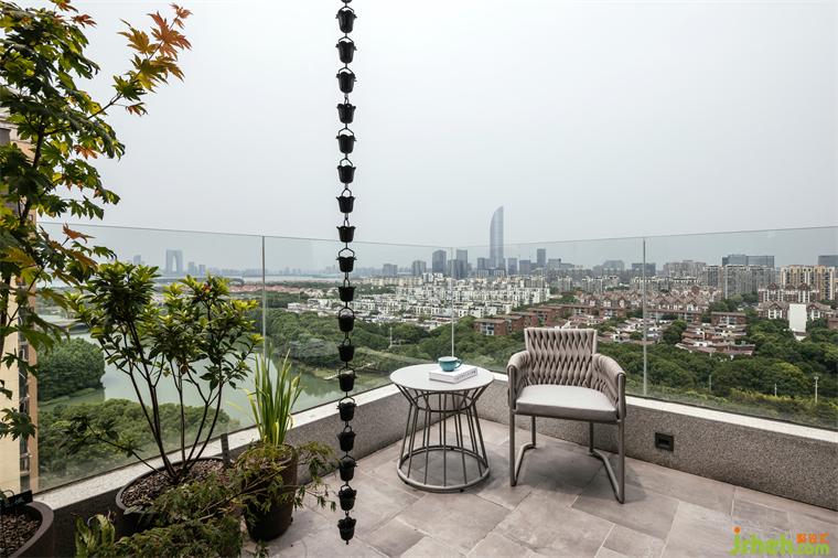 一把椅,一張桌,便可使人沉浸在安全、開闊、清新的氛圍里,享受一覽無余的城市景觀,復式裝修設計感知隱逸于世的那份靜謐。