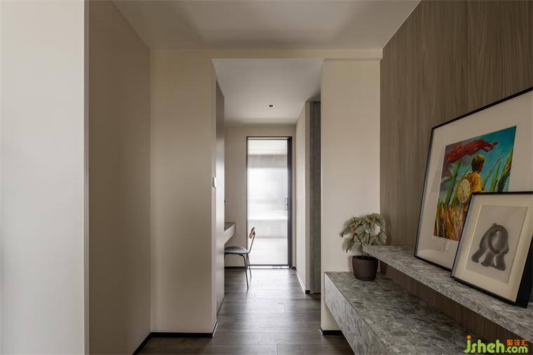 穿插石材體塊,以厚薄尺度講述橫向氣勢的舒暢感,打磨寬窄關系營造藝術糅合自然的展示空間,流動的光,指引人至另一場域。