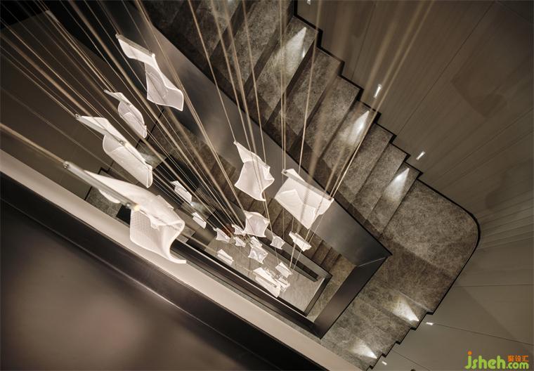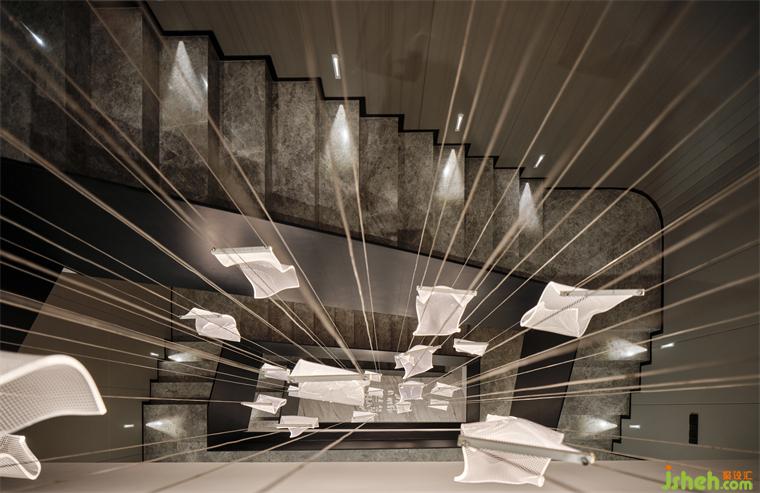 點(diǎn)狀光體,以疏密有道的形式,顯露出不同場(chǎng)域的特質(zhì),引入海涵書(shū)卷的概念,借用簡(jiǎn)筆形態(tài)綻放靈動(dòng)的序列感,拉伸了上下結(jié)構(gòu)的深度,豐富了轉(zhuǎn)折區(qū)域的趣致。