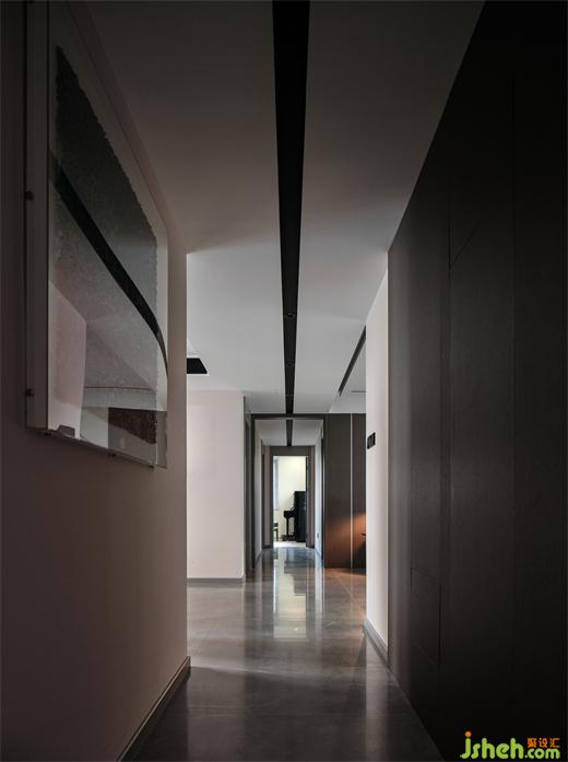 天花的寬面黑線,強(qiáng)調(diào)了多重縱深感,有斷有續(xù),使得左右兩側(cè)的場(chǎng)域不知不覺(jué)地靜下來(lái),醞釀舒怡氣韻,由淺入深地觀賞,再逢深淺相間的節(jié)奏美感,讓生活可期。