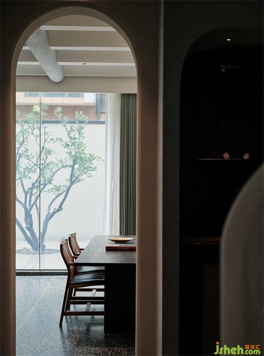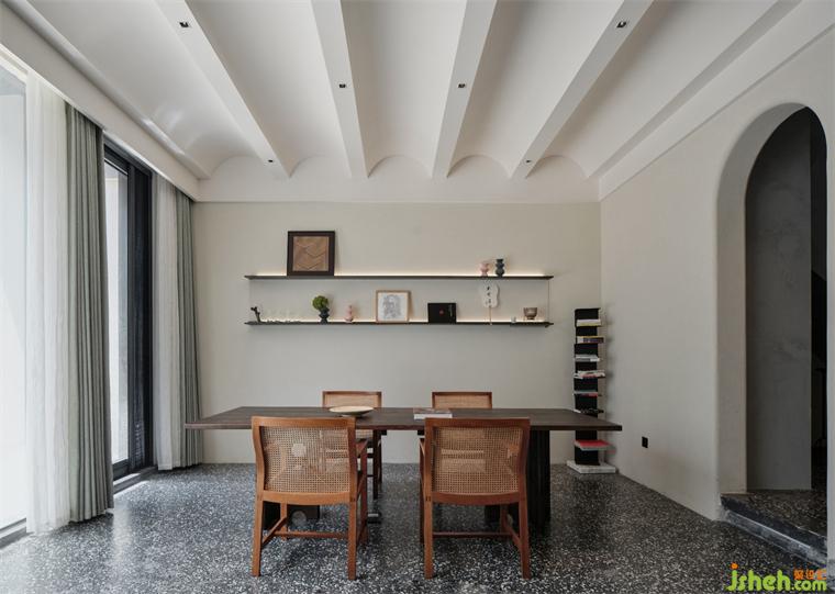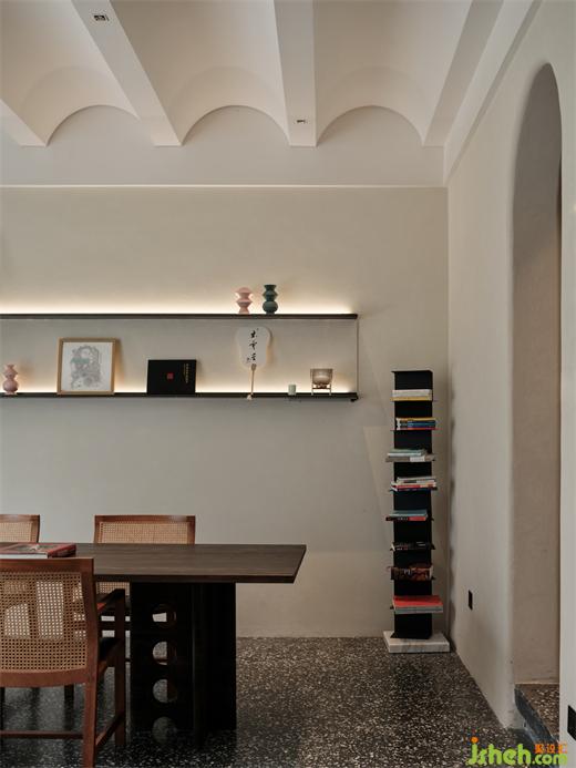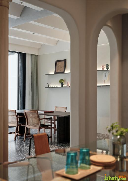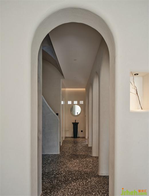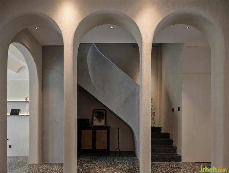 墻面、頂面設(shè)計(jì)了很多拱形造型,曲線為空間帶來(lái)了流動(dòng)性,抹去尖銳的棱角,涂上奶黃般柔和平靜的藝術(shù)漆,別墅裝飾給人以舒適的安全感,同時(shí)也傳達(dá)了屋主人的友好與熱情。