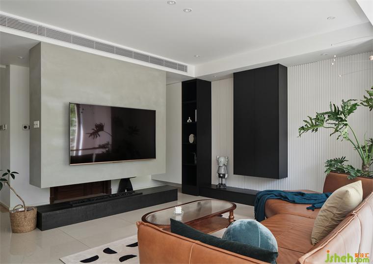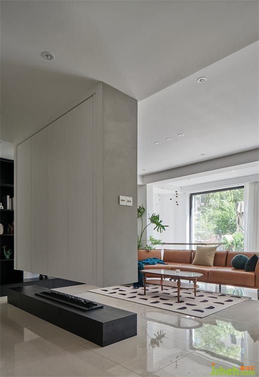 ▲電視墻與壁爐結(jié)合可以當(dāng)做玄關(guān)裝置