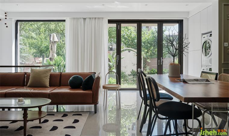 客廳經(jīng)過改造后非常的通透,南面是巨大的落地窗和移門將室外院子的蔥蔥綠意框在畫中,平時(shí)可以在院子里擺弄花草,也可以在客廳窩在舒服的沙發(fā)里享受輕松的生活情調(diào)。