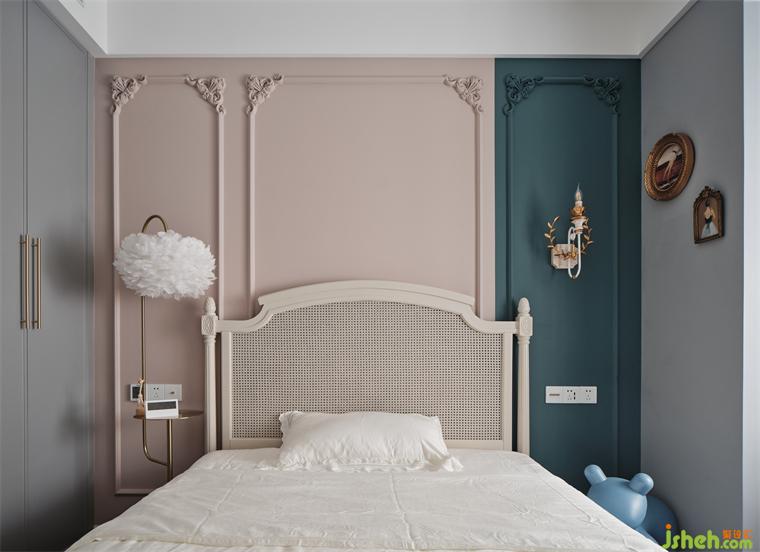 女兒房簡(jiǎn)單可愛,滿滿的少女風(fēng),床頭使用嫩粉和墨綠的拼色,裝飾角花、石膏線條,復(fù)古優(yōu)雅。蘇州裝修設(shè)計(jì)床頭的羽毛落地?zé)艨梢宰鲅b飾也可以當(dāng)做邊幾,是實(shí)用與美觀的結(jié)合,業(yè)主家中有很多這樣很有心的小物件,是一位很細(xì)心的生活家。