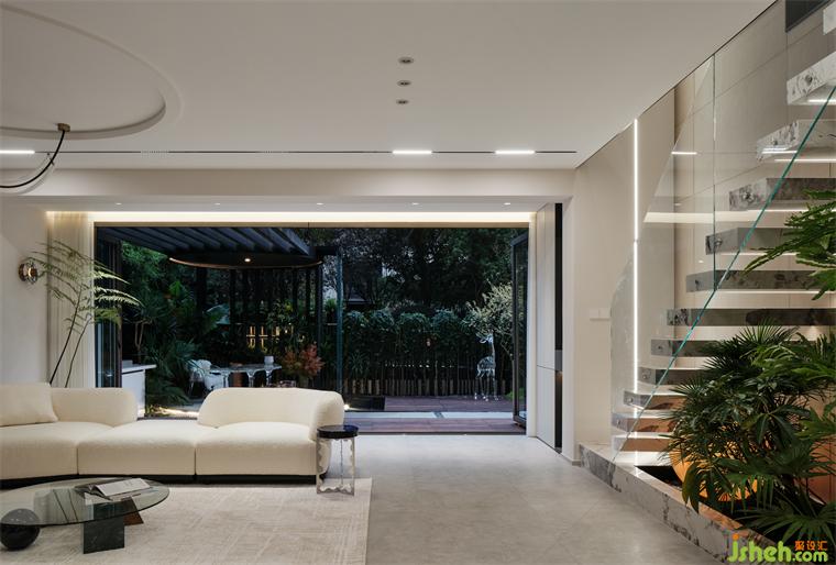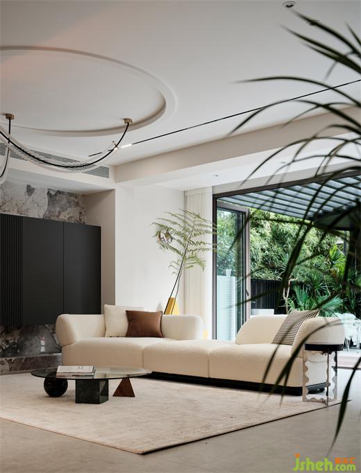 幾何框架,棱角分明,風(fēng)景一覽無余,從感知上和想象里聽風(fēng)聞香,豐盈了居住環(huán)境的詩意。復(fù)式裝修設(shè)計(jì)排布或連續(xù)或間斷的燈帶,強(qiáng)化空間結(jié)構(gòu),營造靈動(dòng)、舒緩、清雋的空間氣質(zhì)。Geometric frame, angular, scenery at a glance, from the perception and imagination of the wind smell, rich in the poetry of living environment. The arrangement or continuous or discontinuous light belt strengthens the space structure and creates the space temperament of smart, soothing and clear.