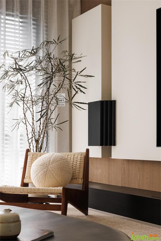 想要營造溫馨氛圍,藤編材質(zhì)無疑是一個(gè)不可或缺的元素,天然的藤編單椅與地毯為空間帶來松弛感,同時(shí)提升美學(xué)氛圍。