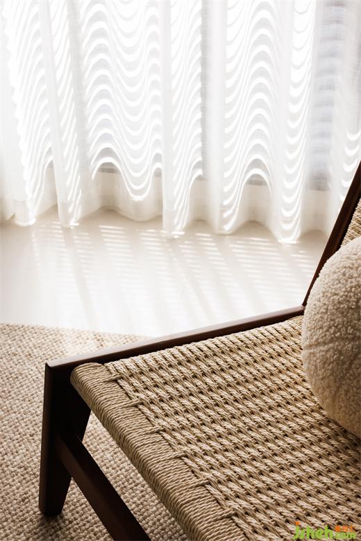 簾動(dòng)微風(fēng)起,為空間增添朦朧的美感。陽光透過縫隙,灑下斑駁的光影,客廳瞬間被柔和的光暈包圍。家中的空氣似乎也沾染了這股溫柔,讓人心生寧靜,舒適自在。