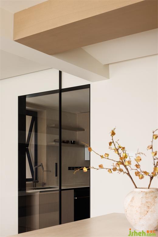細(xì)框玻璃門將烹飪空間與外界分隔,經(jīng)典黑色線條與大面積透明玻璃結(jié)構(gòu)擁有極簡的視覺元素,在空間中創(chuàng)造驚艷且深刻的美學(xué)表達(dá)。