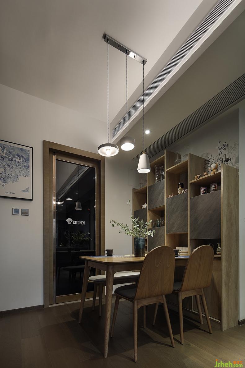 靠墻而立的是風(fēng)格獨(dú)特的錯(cuò)落式木柜,可陳設(shè)酒器、擺放小巧的飾品;靠柜擺放的是簡(jiǎn)約系木質(zhì)長(zhǎng)型餐桌,搭配以餐椅和長(zhǎng)凳結(jié)合的形式,便于收納也節(jié)省了空間;上方是錯(cuò)落有致、造型不一的幾何燈具,設(shè)計(jì)感滿滿!各元素的有機(jī)組合,打破了原有空間的單調(diào),再配上一首舒緩的音樂(lè),好不悠哉!深圳設(shè)計(jì)公司