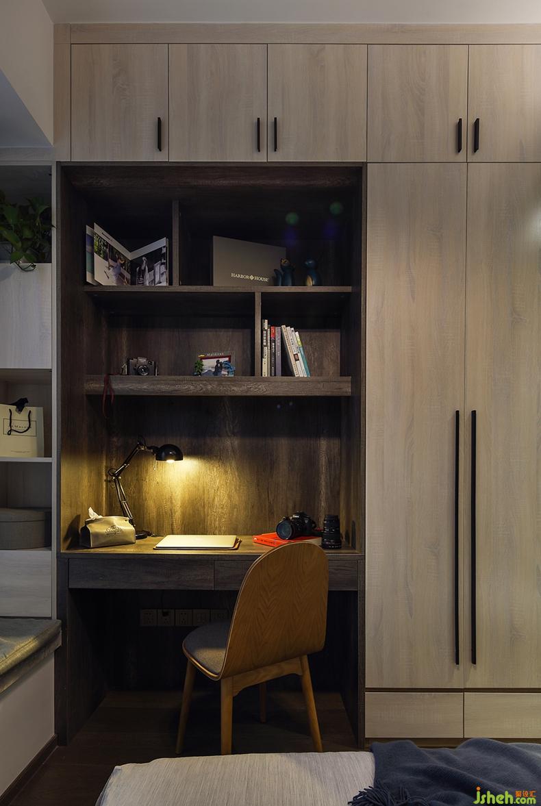 深夜工作可能是大多數(shù)深圳人的常態(tài)了,特意將衣柜的一部分設(shè)計成書桌,既節(jié)省空間也方便工作。在深色的懷舊情懷中,融入了現(xiàn)代生活的簡約,一切都恰到好處。