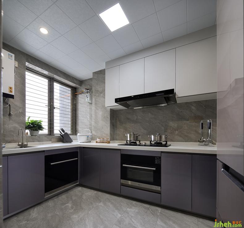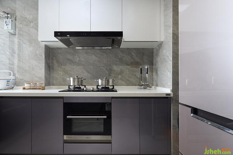 廚房素雅大氣,功能分區(qū)恰到好處。白色吊柜整潔干凈,柜門為按壓式,既方便又省力。