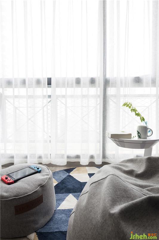 客餐廳采用一體化設(shè)計(jì),沒(méi)有設(shè)置隔斷,減少了空間的壓抑感和擁擠感,視覺(jué)上也更加通透。餐桌周邊的掛畫特意選擇了跳脫的藍(lán)色,豐富了空間層次感。