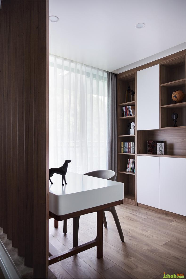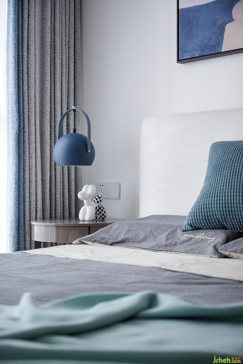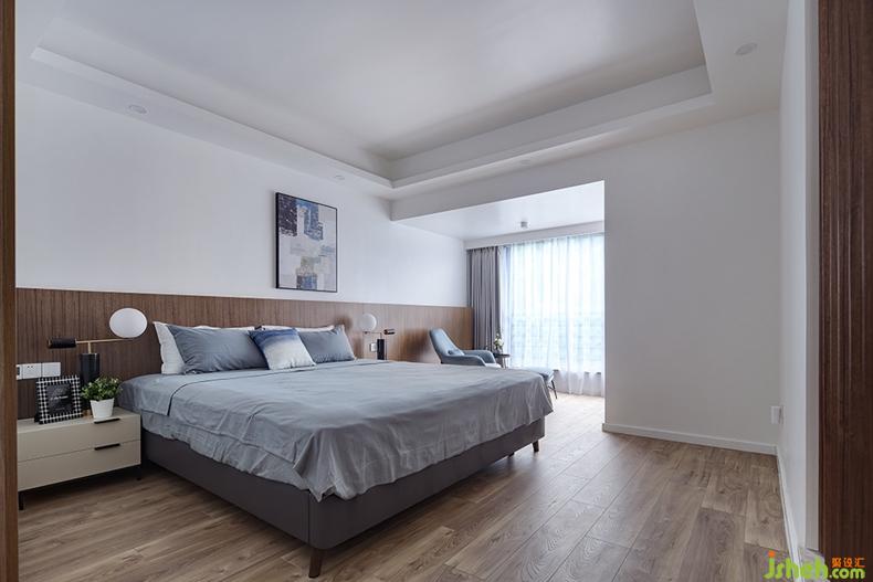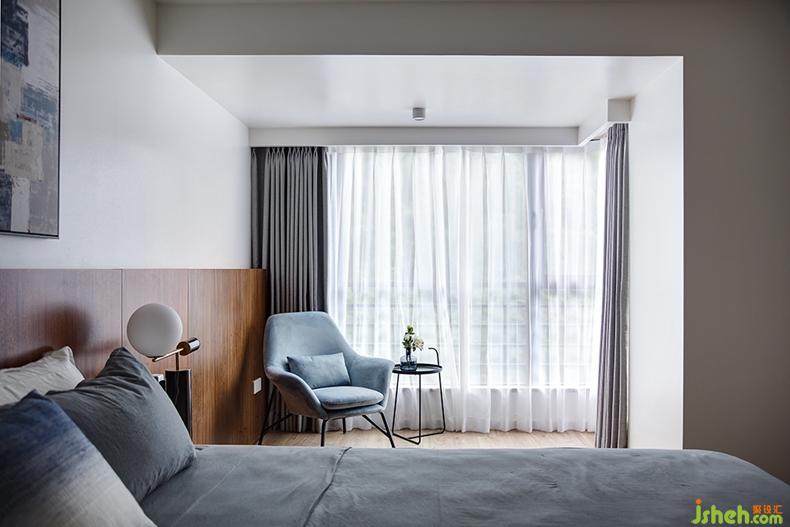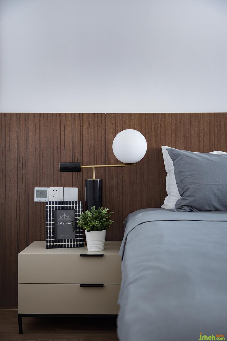 適當(dāng)留白是當(dāng)代藝術(shù)中的常用手法,主臥室便是如此,以靜謐的灰色床品搭配半高的木色護(hù)墻板,其上掛幅同色系的撞色掛畫(huà),一切點(diǎn)到為止,沒(méi)有過(guò)于繁雜的裝飾,慵懶舒適的氛圍漸漸濃厚,給人帶來(lái)無(wú)限享受。