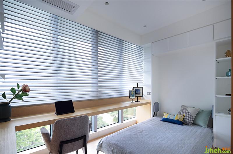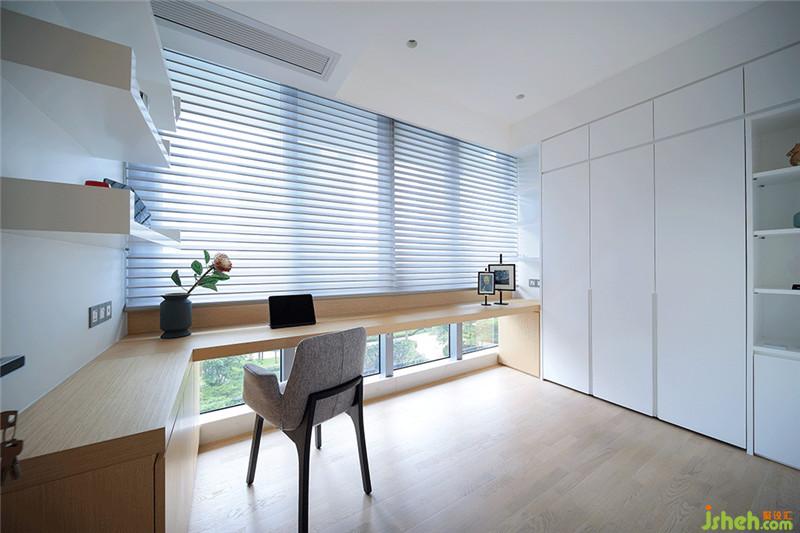 多功能房延續(xù)了整體的簡(jiǎn)約風(fēng)格,選用白色+木色的絕佳組合也讓整個(gè)空間更顯精致。在房間內(nèi)部有一個(gè)隱藏式的翻版床,關(guān)合時(shí)與其他柜體融為一體,視覺(jué)上的整體感很強(qiáng);需要時(shí)可將翻板床打開(kāi),成為一個(gè)標(biāo)準(zhǔn)的臥室,十分靈活。