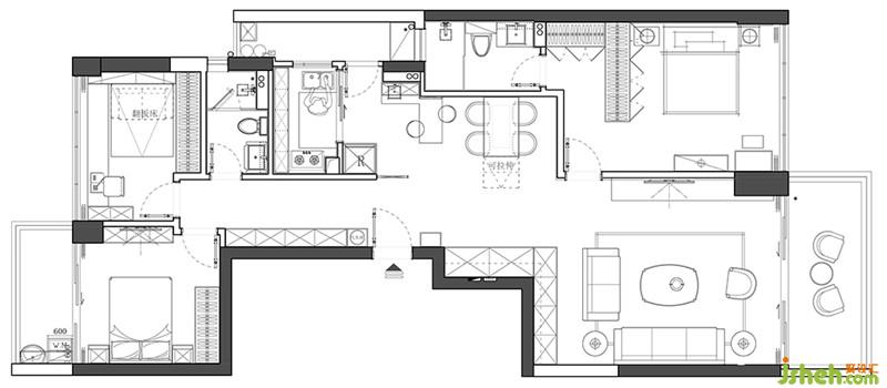 原始結(jié)構(gòu)的主人房收納空間非常少,特意將原來(lái)的單面柜改造成了L型的衣帽間,擴(kuò)大收納空間,使用起來(lái)也更加愜意。深圳裝修公司