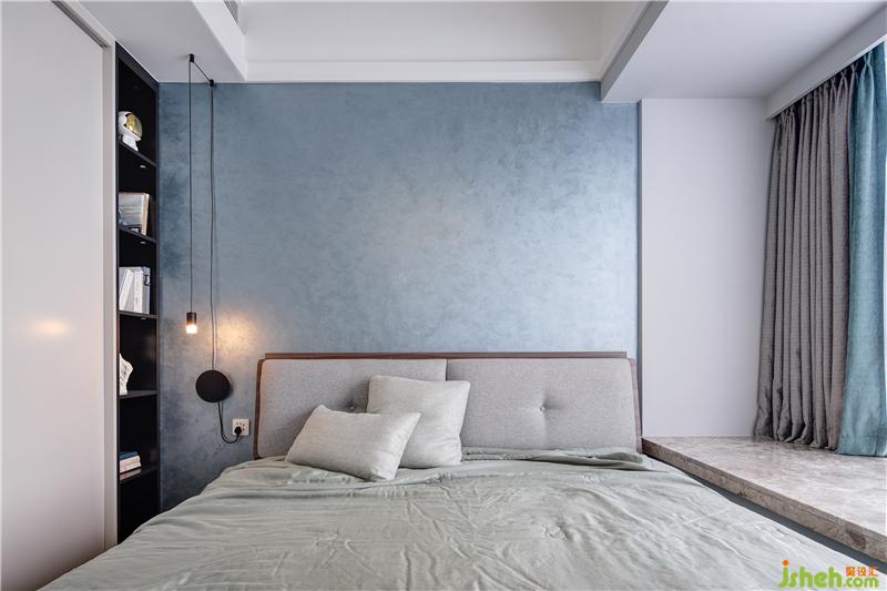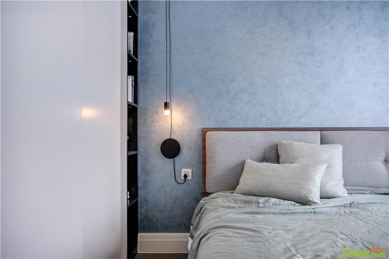 延續(xù)素雅主調(diào),次臥在色彩搭配上也極為講究,除了黑白灰的中性色外,僅在床頭背景處使用了藍(lán)色的藝術(shù)涂料,與窗簾的藍(lán)色相呼應(yīng),和諧統(tǒng)一。低飽和度的色調(diào)既優(yōu)雅又不高冷,既含蓄又清新,營造出層次分明的時(shí)尚質(zhì)感。