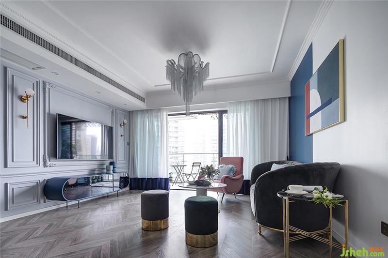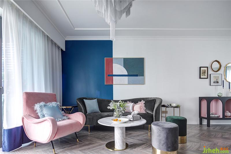 就拿顏色來說吧,業(yè)主的色彩開放度高,對(duì)新家的期待也是不打安全牌,我們索性顛覆常規(guī)配色,巧妙運(yùn)用對(duì)比色,為空間加點(diǎn)色彩添點(diǎn)格調(diào),讓法式輕奢的浪漫風(fēng)情更加濃烈。