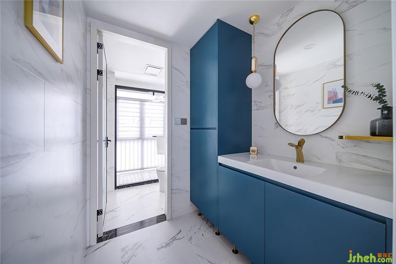 白色簡(jiǎn)單卻能搭配所有顏色,而且,還能讓衛(wèi)浴間更清爽、開(kāi)闊,搭配藍(lán)色浴室柜與金色小五金,打造典雅大氣之感。三分離的空間設(shè)計(jì)也極為講究,打造酒店般的體驗(yàn),提升使用品質(zhì)。