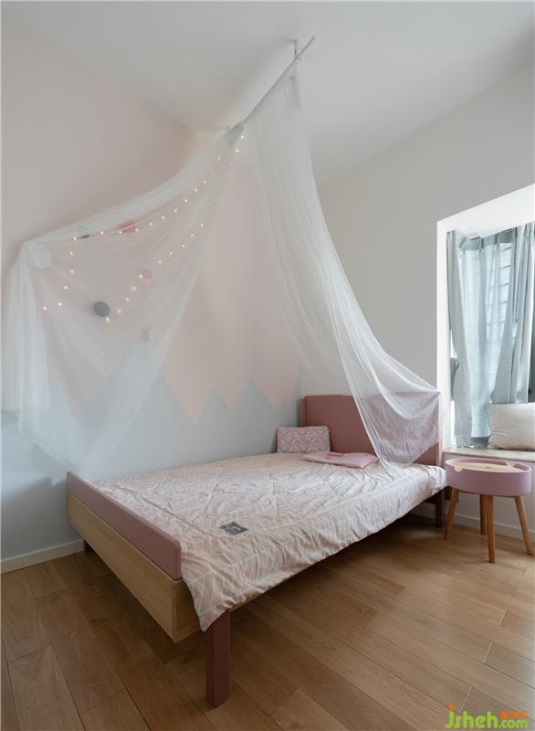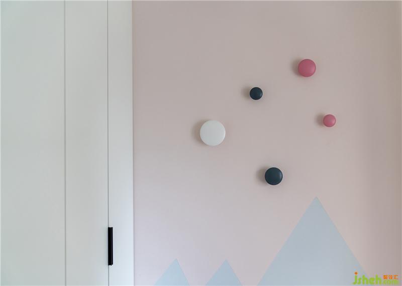 兒童房由靈活可移動的家具和色彩柔和的藝術(shù)涂料構(gòu)成,粉色和藍(lán)色搭配顯得空間溫暖而優(yōu)雅,步入空間時(shí),又能感知其中的童趣和愉悅。
