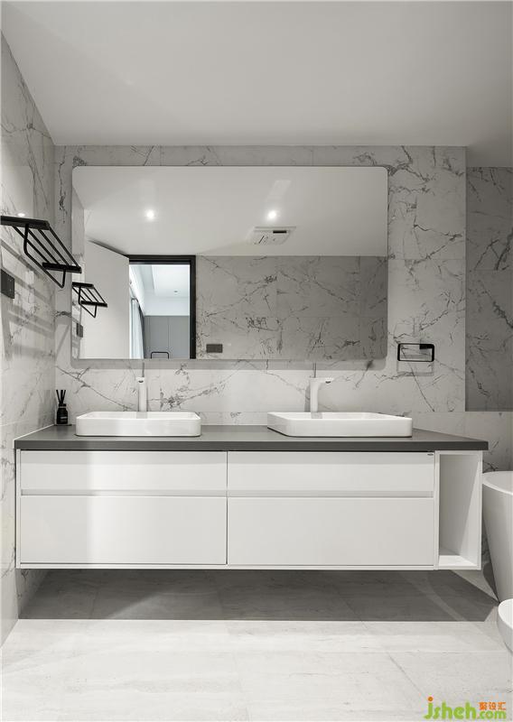 主衛(wèi)以大理石材質(zhì)為主,更顯高端大氣、其韻悠揚(yáng)。雙臺盆和大鏡面的設(shè)計(jì)讓空間更加明亮通透,彰顯一種美好、精致的生活態(tài)度。