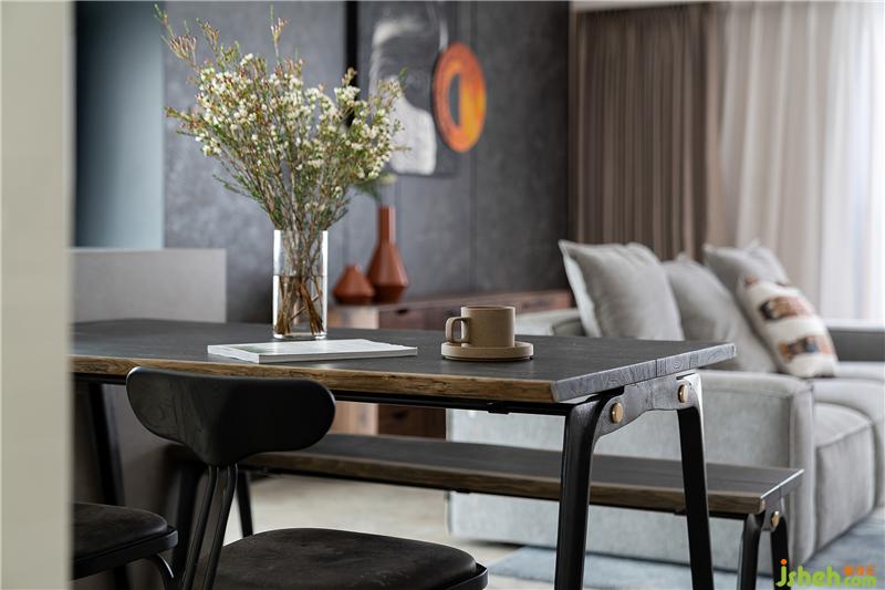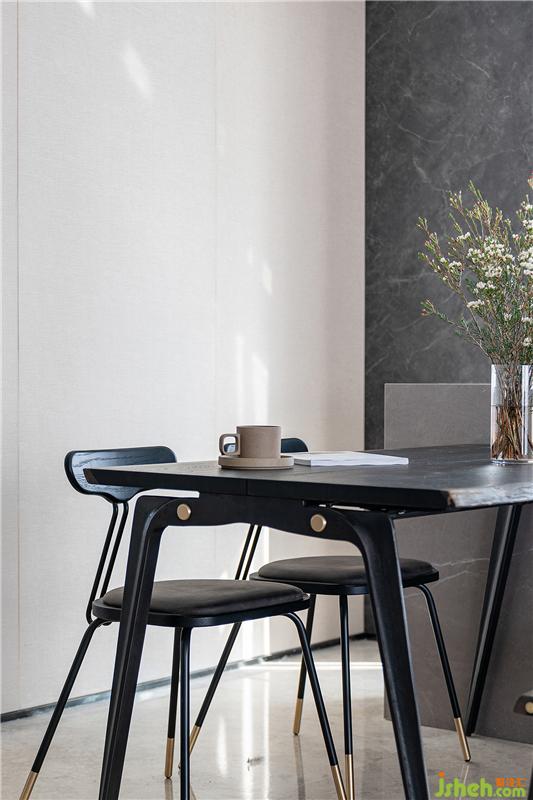 巖板吧臺(tái)+木制餐桌、個(gè)性餐椅+木制條凳,再加上同款個(gè)性吧椅,餐飲、休閑、輕辦公都可滿足,讓餐廳不僅僅是用餐空間,彰顯了設(shè)計(jì)的“生活”之美。