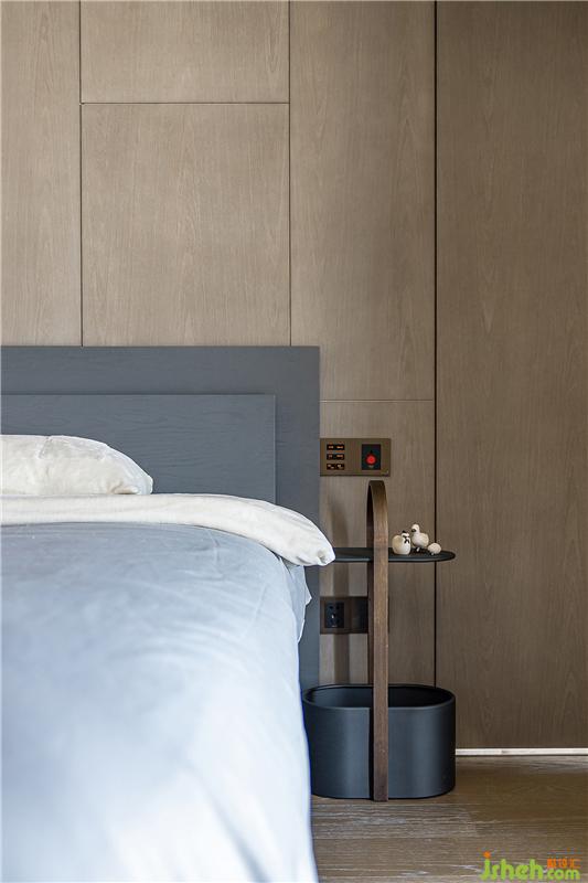 主臥家具以高級(jí)灰質(zhì)感為主,靜謐的色調(diào)也使空間充滿寧?kù)o的氣息。床頭背景墻改造成了整面水洗秋香木紋的護(hù)墻板+隱形門,令空間更加平衡,既有工業(yè)風(fēng)的粗獷感,造型又很簡(jiǎn)約,與現(xiàn)有裝修基礎(chǔ)完美融合。