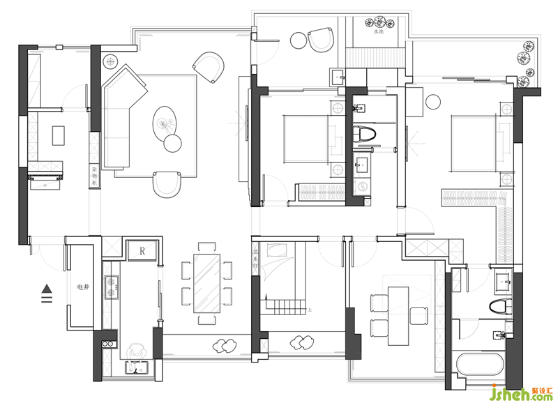 “買房看景觀、設(shè)計看眼緣”,聽上去似乎不太符合銀行人的人設(shè)?但仔細(xì)一想,卻有幾分透過現(xiàn)象看本質(zhì)的意思。本案業(yè)主對房子的戶型、朝向、景觀等都比較滿意,希望裝修后既能有超強(qiáng)的收納功能,看上去又是簡約大氣、上檔次的。