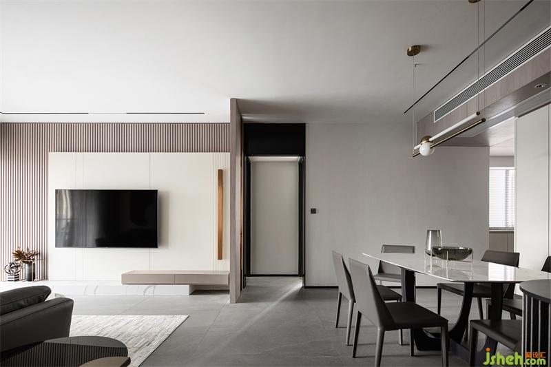 步入室內(nèi),明亮開闊的客廳空間躍入眼簾。灰咖色木格柵的緊湊感和淺色紋理巖板+護(hù)墻板的疏朗感,構(gòu)成了張弛有度的設(shè)計(jì)效果,打破空間的沉悶無趣,使家居生活更加愜意舒適。