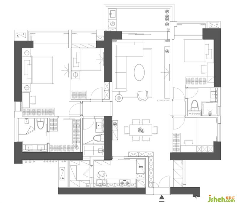 3、主臥衣帽間較小,主衛(wèi)不需要浴缸,兩者可以協(xié)調(diào)分配。