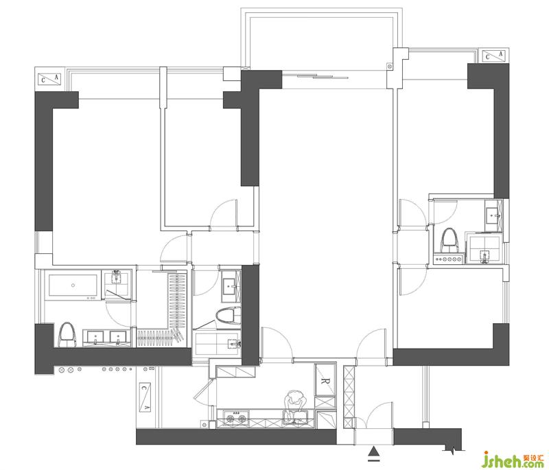 3、拆除主衛(wèi)浴缸,調(diào)整主衛(wèi)潔具位置,縮小主衛(wèi)空間并順勢(shì)增加衣帽間空間。