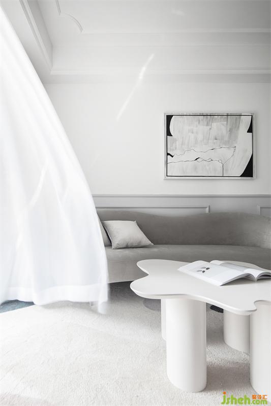 設(shè)計(jì)師將內(nèi)陽(yáng)臺(tái)改造成了兩人同時(shí)使用的獨(dú)立書房,成功令三房結(jié)構(gòu)變成了四房,滿足業(yè)主使用需求。室內(nèi)整體以白色+高級(jí)灰為基底,局部臟粉色裝點(diǎn),運(yùn)用藝術(shù)漆、柵格、石膏與布藝等多種材質(zhì),在線條與紋理之間有序交疊,生活的溫暖與質(zhì)感也隨之升溫。