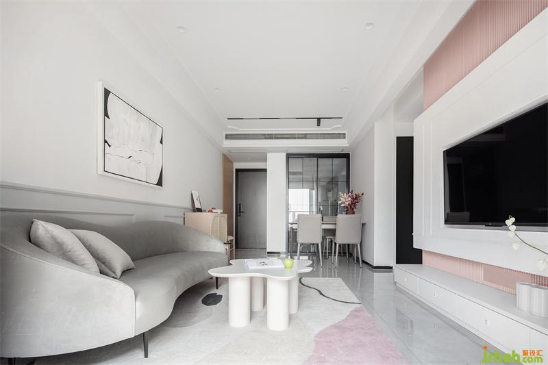 高級灰環(huán)抱式布藝沙發(fā)搭配臟粉色烤漆邊幾,溫柔可愛的氣息撲面而來。臟粉色有一種跨越年齡的輕熟魅力,于高級灰和白色之間點綴,使空間呈現(xiàn)高級的甜美。