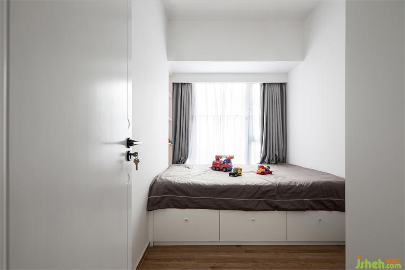 居住人口較多時(shí),需要收納的空間也是更大的。索性將兒童房以榻榻米形式打造,底部是抽屜式儲(chǔ)物格,拉取更加便利。充分利用戶(hù)型角落空間,靠窗側(cè)面的凹位加設(shè)收納格,令孩子的玩具和書(shū)籍有了歸屬,實(shí)用且貼心。