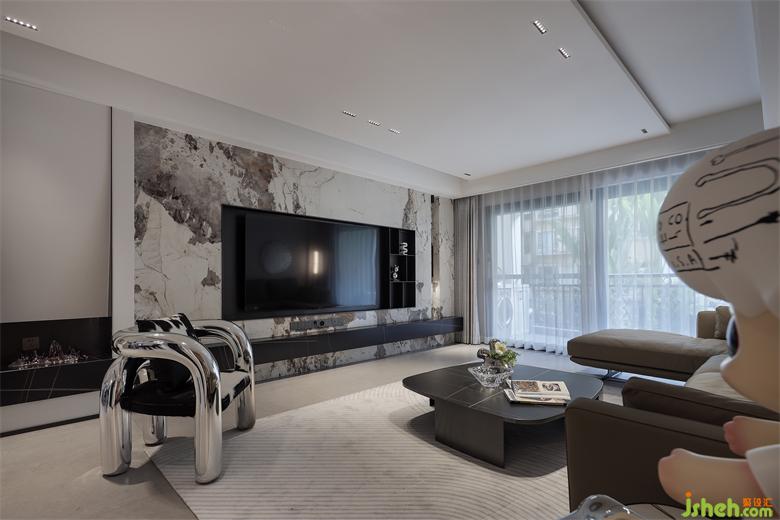 電視背景墻巧妙運用幾何形體穿插的設(shè)計手法,在巖板之上加設(shè)凹槽內(nèi)置吊燈,光源之下是黑色懸浮巖板臺,既是造型又能充當(dāng)電視柜。深圳家裝設(shè)計左側(cè)斜面之下是電子壁爐,仿真火焰在夜間格外有情調(diào),平時又兼具加濕功能,實用技能點滿!