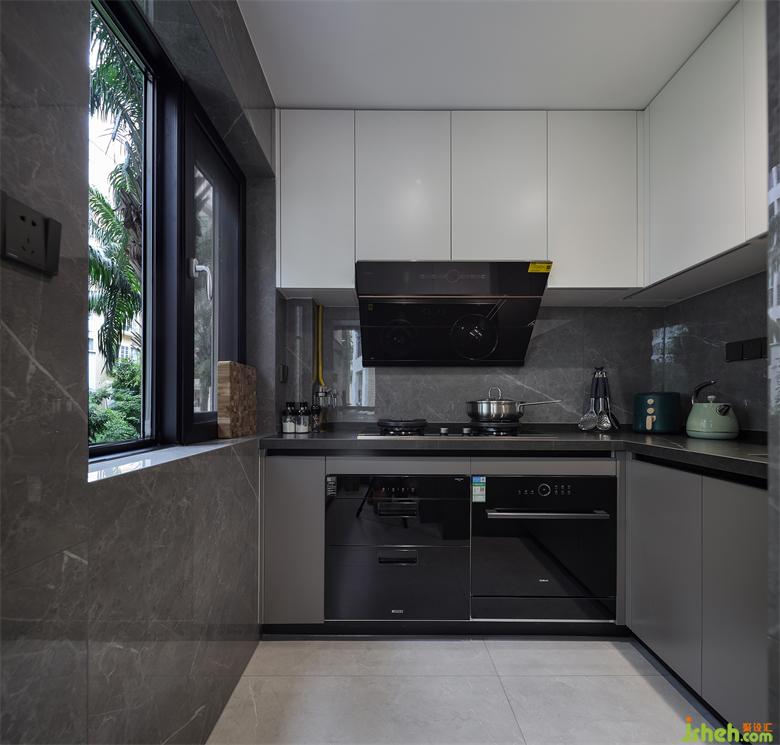 廚房區(qū)域簡潔又靈動,L形的操作臺面動線流暢、易于使用,將空間利用率最大化。深圳家裝設計廚房小幫手們也有自己專屬的位置,煎炒烹炸都不在話下!