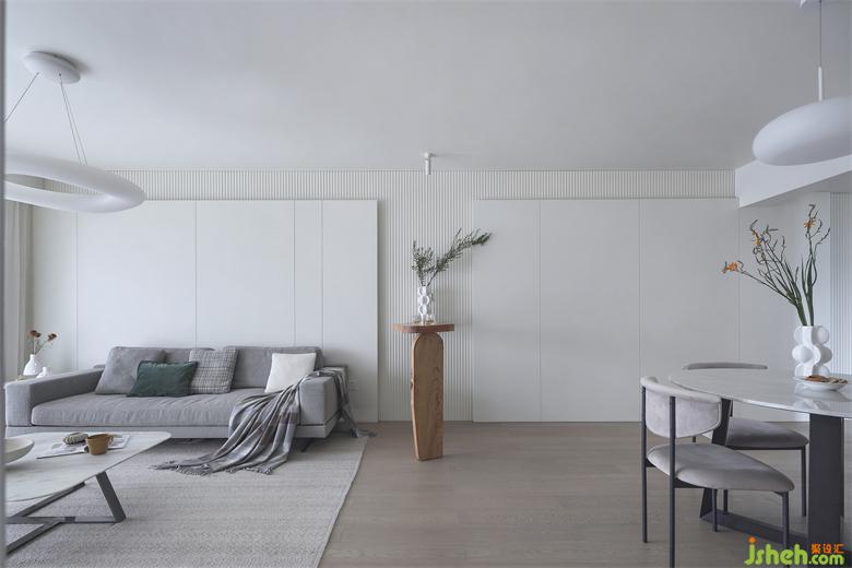 沙發(fā)背景墻不愧是出自設(shè)計(jì)師之手,遠(yuǎn)超直接刷白漆的效果。深圳家裝設(shè)計(jì)以雙層暖白色護(hù)墻板疊加,絲滑而不易藏灰的波浪板打底,再疊加一層護(hù)墻板,使得整面背景墻低調(diào)地白出了質(zhì)感、白出了層次、白出了輪廓。