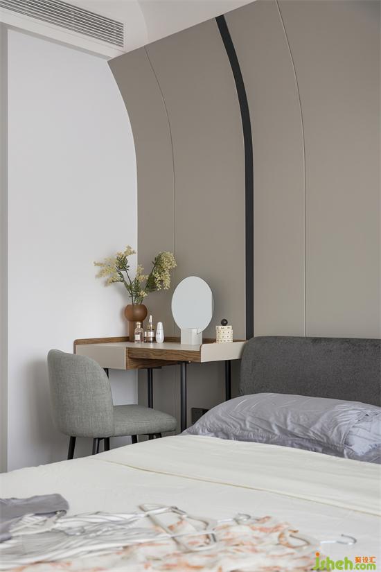 有女主人在的家,自然少不了精致的梳妝臺,床頭一邊采用了當下流行的木質化妝桌替代床頭柜,略比床頭柜富裕一丁點的空間也被精準利用。