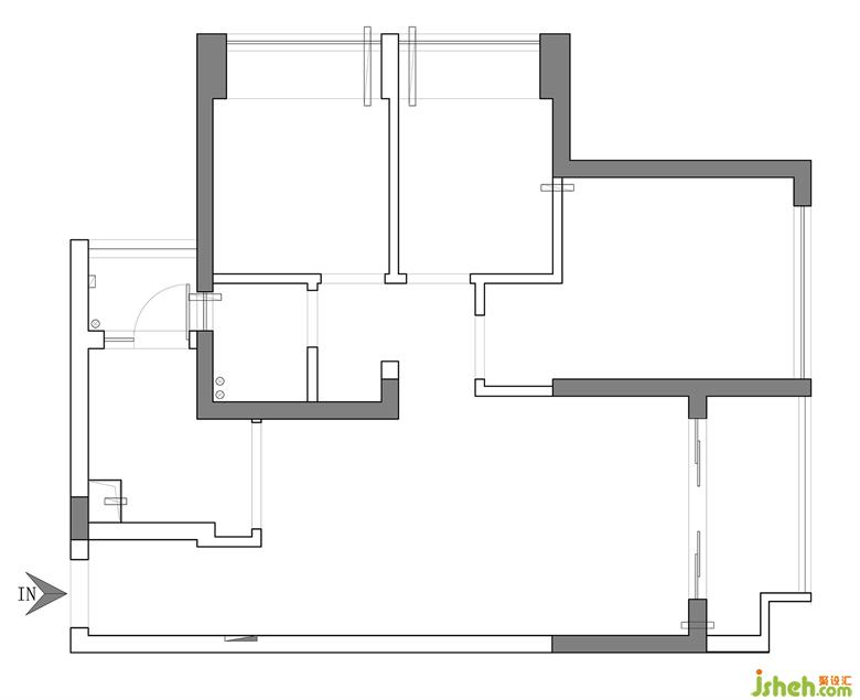?餐廳區(qū)域較小,無法正常放置餐桌,動(dòng)線受阻。