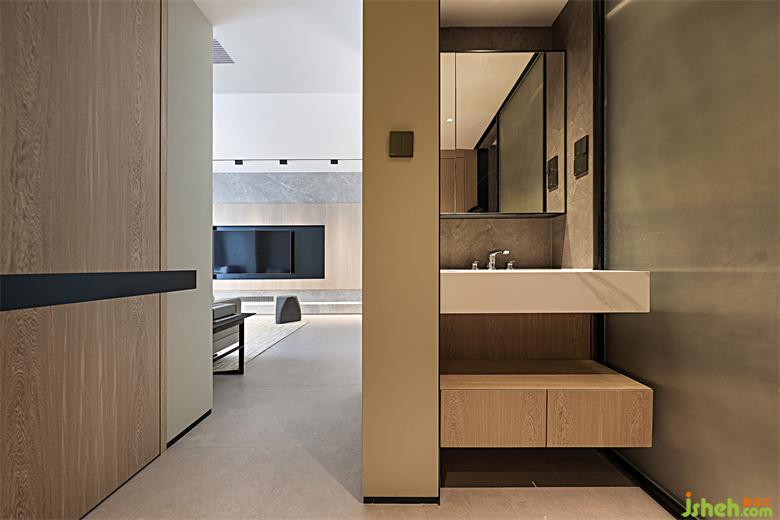 木材的選擇是本案一大特色,由于業(yè)主自家從事木作行業(yè),這個(gè)得天獨(dú)厚的資源必須給安排上!設(shè)計(jì)師選擇現(xiàn)代直紋木皮代替原始樹木紋理,大面積對(duì)客餐廳、過道墻面進(jìn)行裝飾,使房門自然嵌入墻面,倒成了一種天然的裝飾。家裝設(shè)計(jì)光影交錯(cuò)之下,溫馨如故。