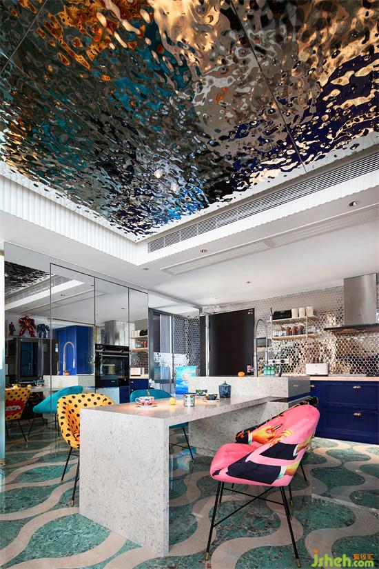 還有什么能比鏡面、不銹鋼和金屬更能營(yíng)造出blingbling的閃耀光效呢?沒(méi)有!而且,小孩子才做選擇,成年人當(dāng)然全都要!于是,在設(shè)計(jì)師靈機(jī)一動(dòng)深思熟慮之下,決定在墻面和天花運(yùn)用如上材料,最大程度展現(xiàn)材料本身的特性,營(yíng)造出業(yè)主想要的閃耀感。