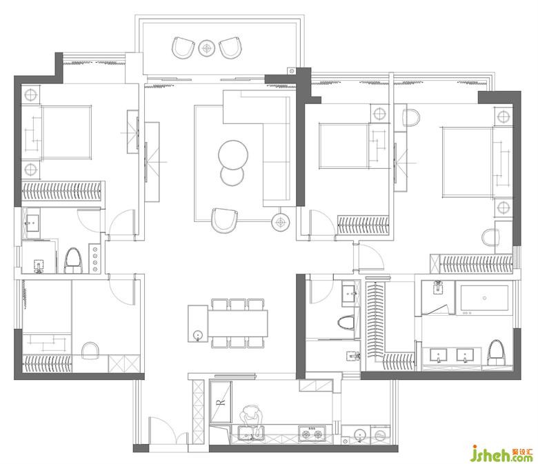 ?女業(yè)主偏愛極簡、侘寂的風(fēng)格,想讓空間盡量開闊、通透,不喜歡過多的裝飾,也不需要太多收納,每個房間有一排衣柜足以。材料想用微水泥,便捷度和環(huán)保性都較高。