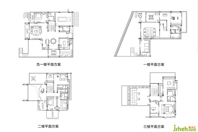 ?負(fù)一樓設(shè)計健身房、茶室、儲藏室、麻將室等多功能會客空間,增加室內(nèi)利用率。獨立的茶室可以看向前后兩邊庭院,視野開闊通透。