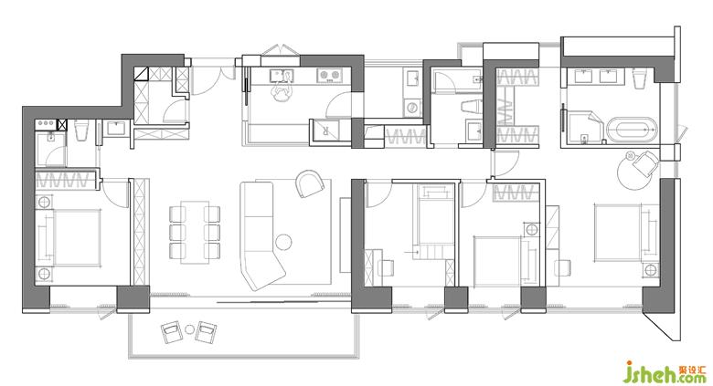 ?客廳較大較通透,景觀好,無餐廳空間,家裝設(shè)計師規(guī)劃餐廳需要注意空間的格局比例,保持通透與開闊。