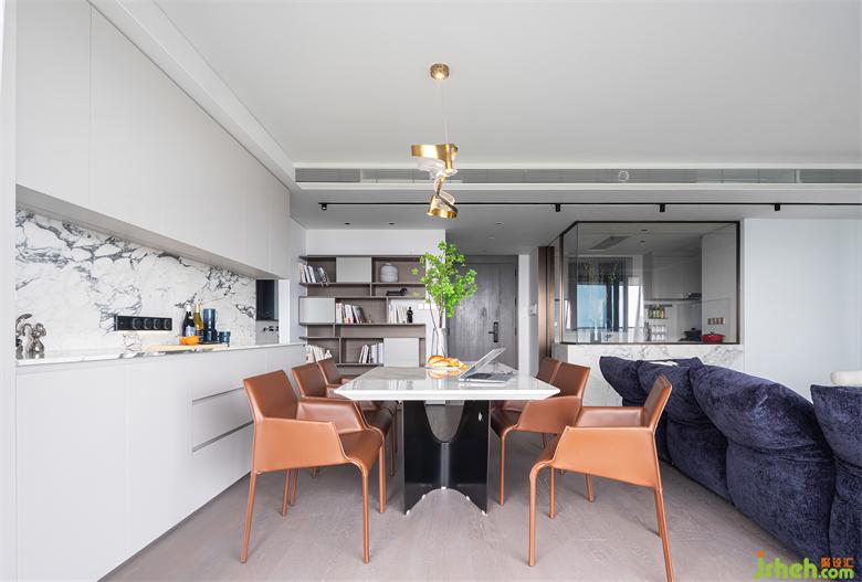 餐廚空間主打一個(gè)人性化設(shè)計(jì)。中間的操作臺(tái)可作為西廚吧臺(tái)使用,緩解廚房壓力,咖啡機(jī),沖泡奶粉都能在這搞定~左側(cè)預(yù)留整排高柜,收納能力強(qiáng)大。吊柜進(jìn)深淺于地柜,開(kāi)關(guān)使用不易碰頭,也增加了空間的層次感。家裝設(shè)計(jì)師無(wú)拉手設(shè)計(jì)極簡(jiǎn)干凈,地柜L型拉手和U型槽,美觀靈動(dòng)使用方便,也不擔(dān)心小孩被把手磕碰。