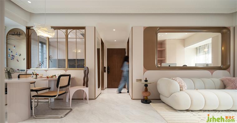 2、餐廚空間一體化呈現(xiàn),以弧形元素+玻璃材質(zhì)+可開合設(shè)計完成功能與顏值結(jié)合,優(yōu)化餐廚區(qū)域動線,為三餐四季提供更多溫暖場景。
