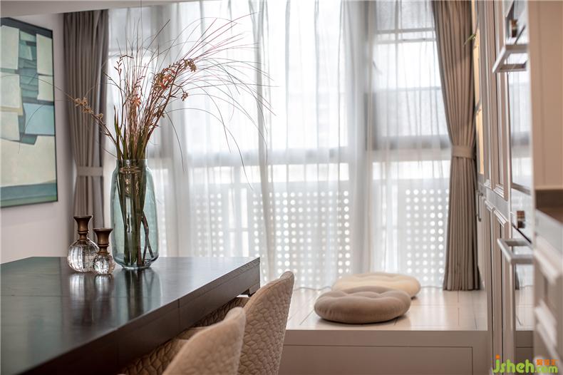 于是,素凈的色調(diào)里面,多了點點色彩和燈火。大面積的暖白色調(diào),讓緊繃的神經(jīng)在踏進家門的得到溫馨的慰藉。